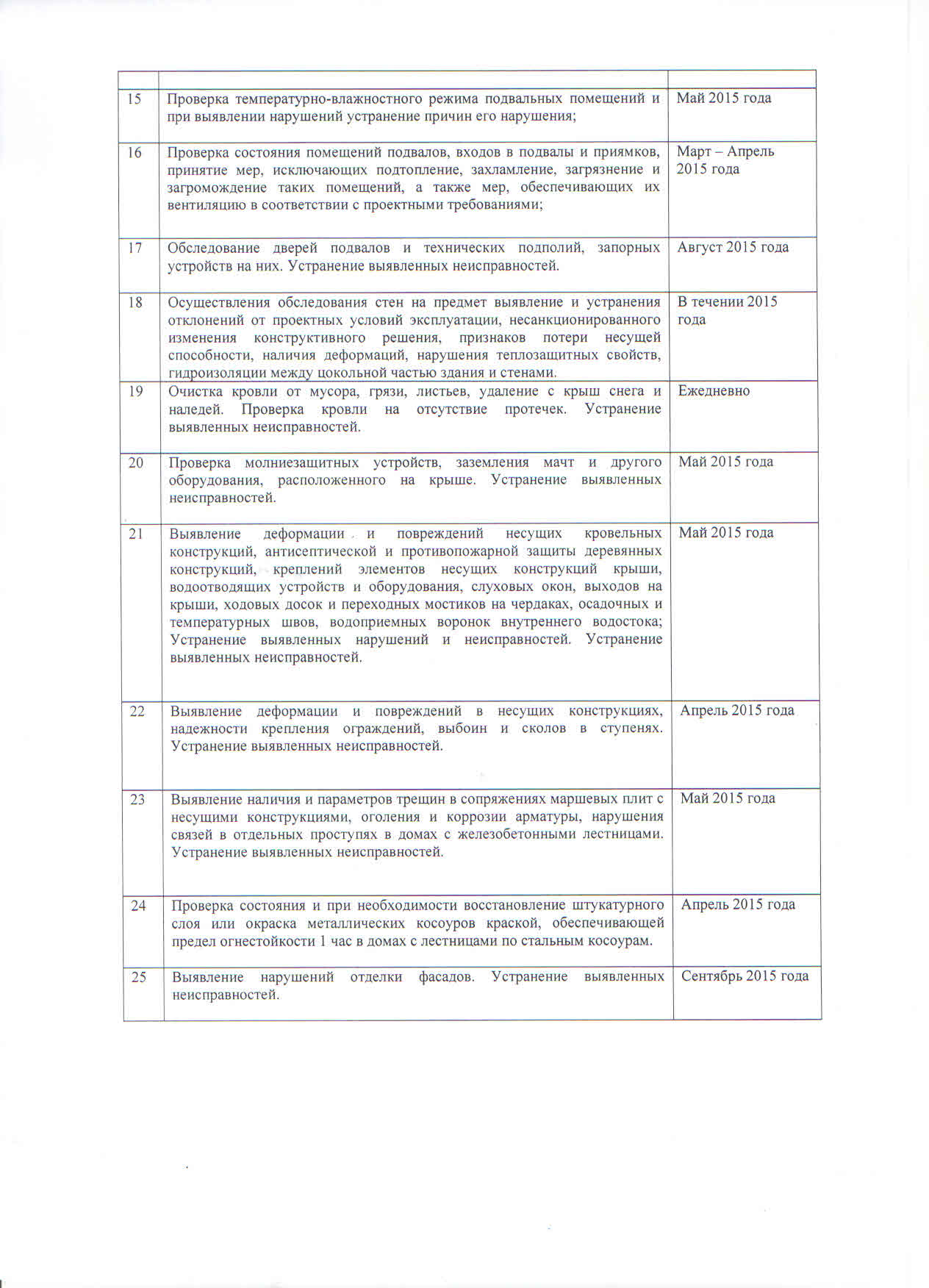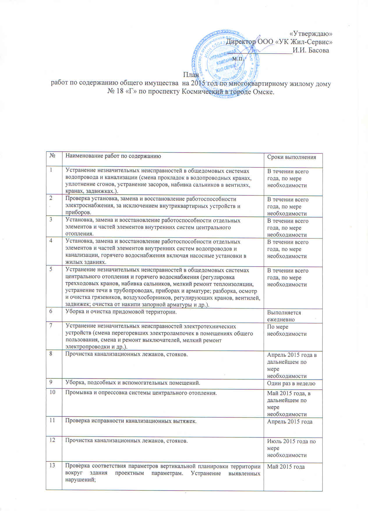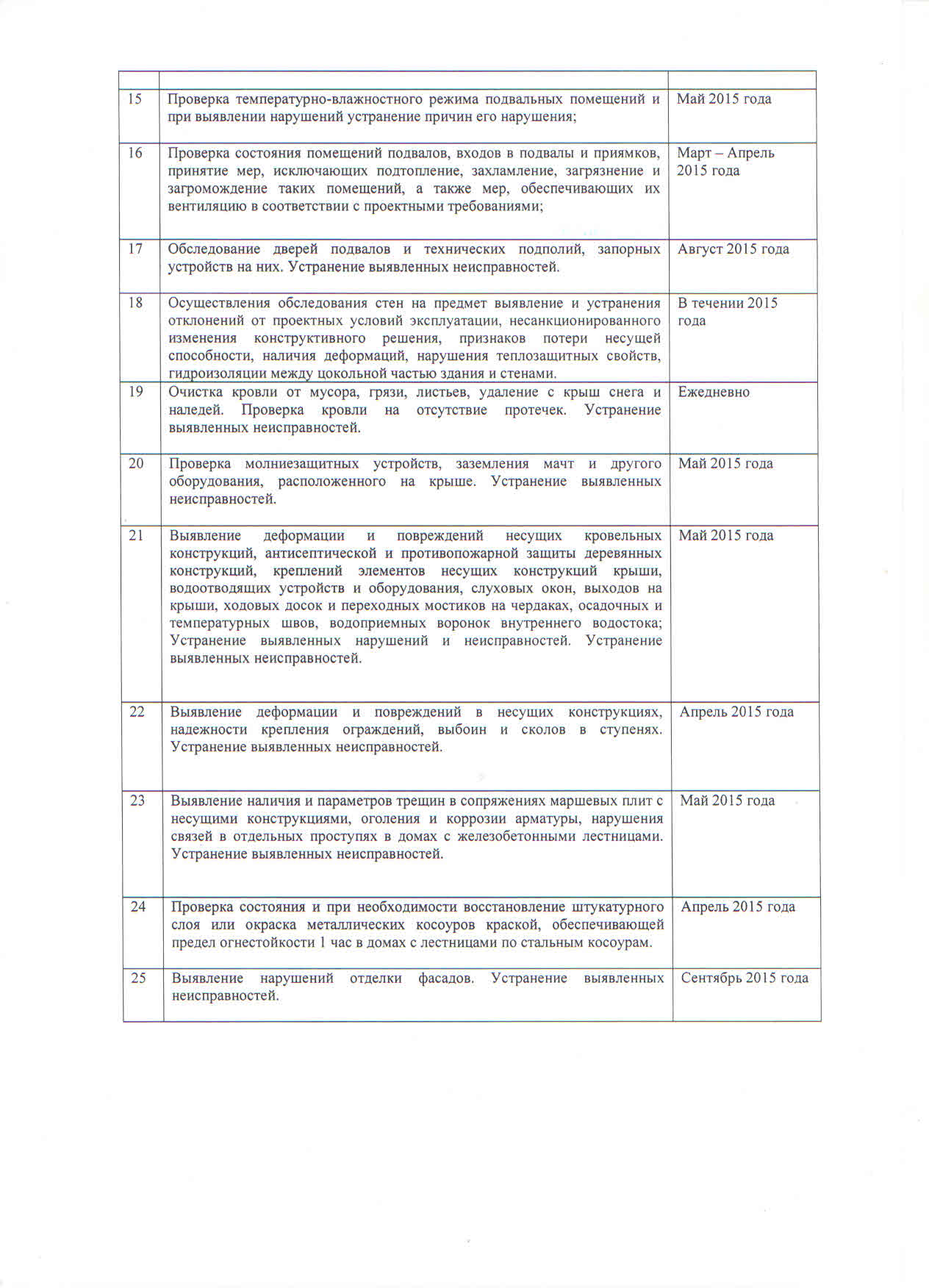 План работ по содержанию общего имущества на 2015 год: