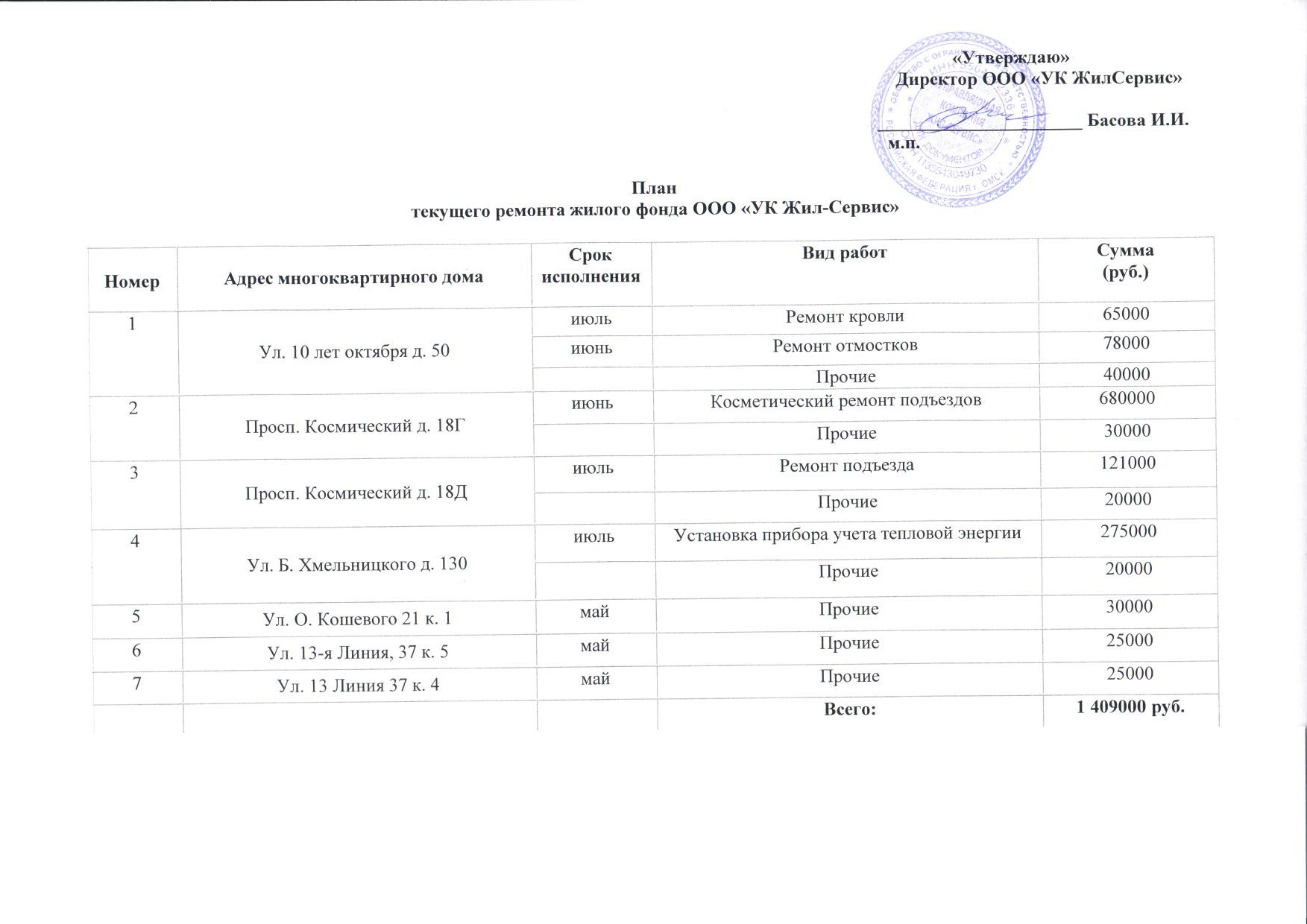 - План работы по текущему ремонту многоквартирных домов на 2017 год
